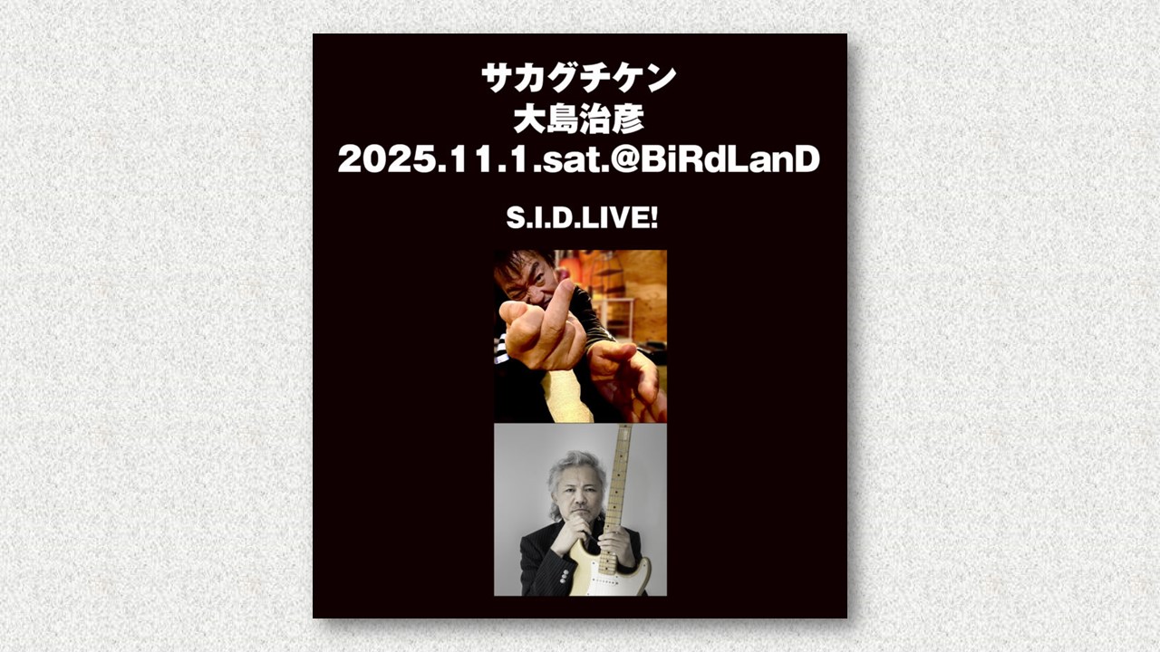 大島治彦 LIVE & サカグチケン SPEAKS vol.6となる「S.I.D.LIVE!」が、香川県にあるBiRdLanDにて2025年11月1日開催される。