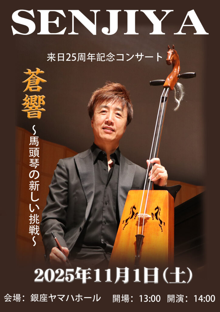 これを記念したコンサート「蒼響 ~馬頭琴の新しい挑戦~」が、2025年11月1日 銀座ヤマハホールにて開催される。