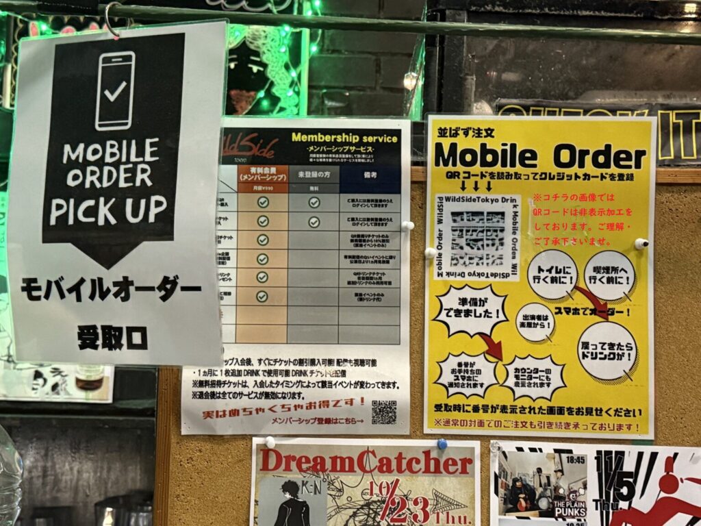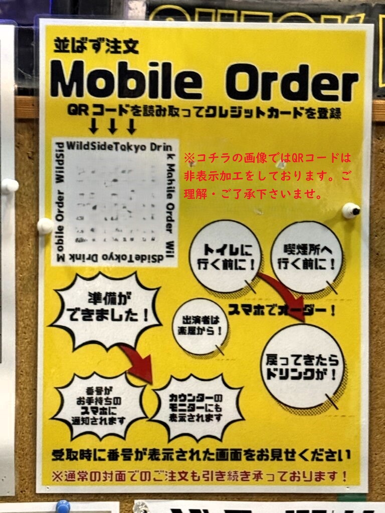 Wild Side Tokyoでは、ドリンクカウンターに並ばなくてもスマホからキャッシュレスでオーダーが可能なシステムを導入している。