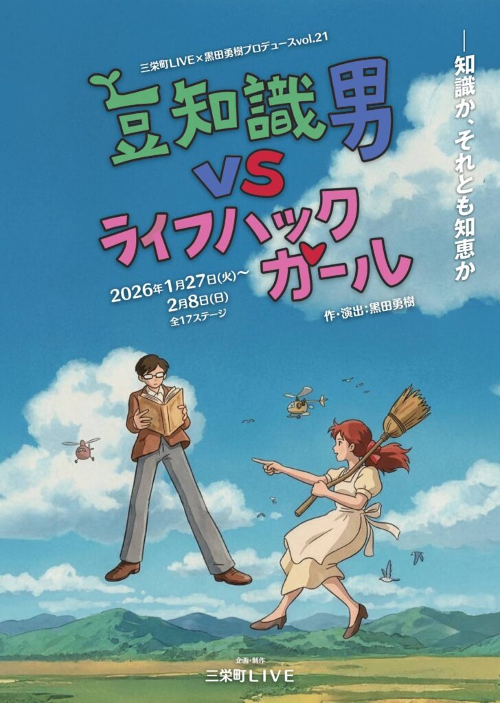 三栄町LIVE×黒田勇樹プロデュース vol.21となる朗読劇「豆知識男VSライフハックガール」が、2026年1月27日から2月8日まで全17ステージにて上演される。