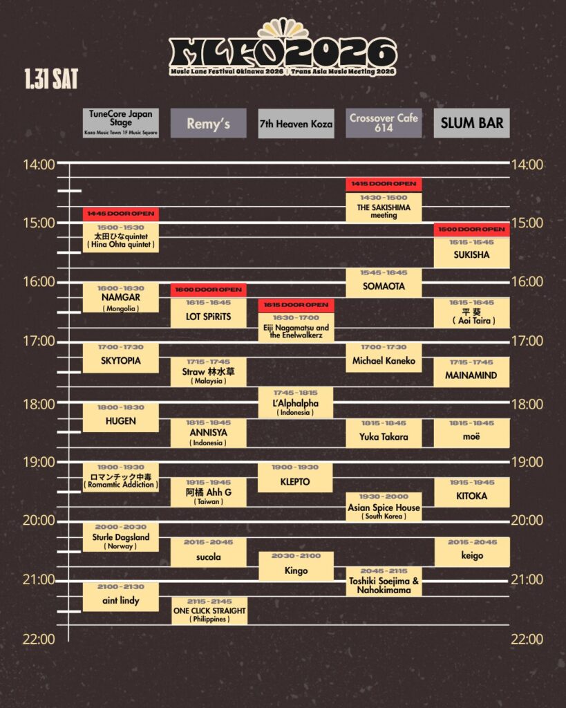 2026年1月30日~2月1日 沖縄県沖縄市(コザ)にて開催される、国際ショーケース・フェスティバル「Music Lane Festival Okinawa 2026 / Trans Asia Music Meeting 2026」。今回はTrans Asia Music Meeting 2026 にて、8つのセッションを開催することが発表された。