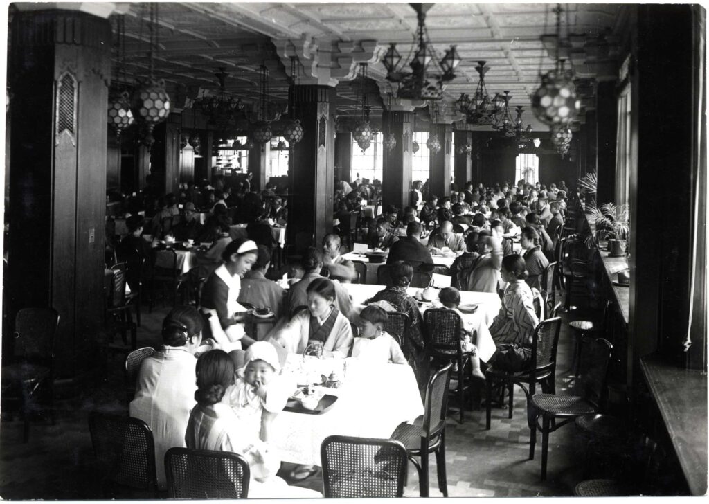 当時の大丸心斎橋店 最上階の7階には食堂が設けられており、多くの人で賑わいを見せた。7階には和風食堂、洋風食堂のような大食堂に加え、小部屋で家族連れや少人数の会食の利用に適した特別食堂も設けられていた。