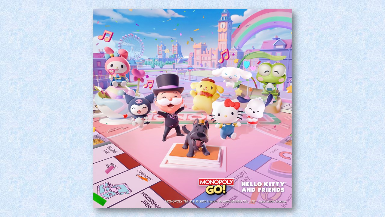 大ヒットモバイルゲーム MONOPOLY GO! が、ハローキティ&フレンズとコラボを開催。2026年3月11日〜3月30日の期間限定で、ハローキティ、シナモロール、マイメロディ、けろけろけろっぴ、ポムポムプリン、ポチャッコ、クロミといった、可愛いキャラクターたちがミニゲームやアイテム等に登場!
