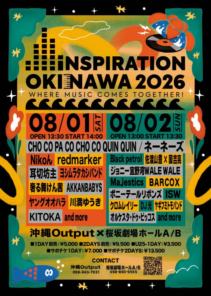 2026年8月1日・2日 沖縄・那覇市 Live house Output / 桜坂劇場で開催される 「INSPIRATION OKINAWA 2026」第2弾出演者 18組が発表された。